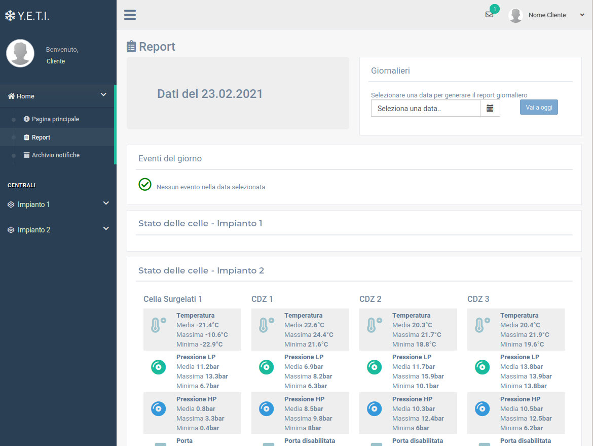 Il pannello di controllo denominato YETI, sempre accessibile via internet, vi consentirà di visualizzare tutti i campionamenti effettuati, consultare grafici e report dettagliati, effettuare il setup dei parametri di funzionamento della macchina. Tutte le centrali in un unico portale di riferimento.